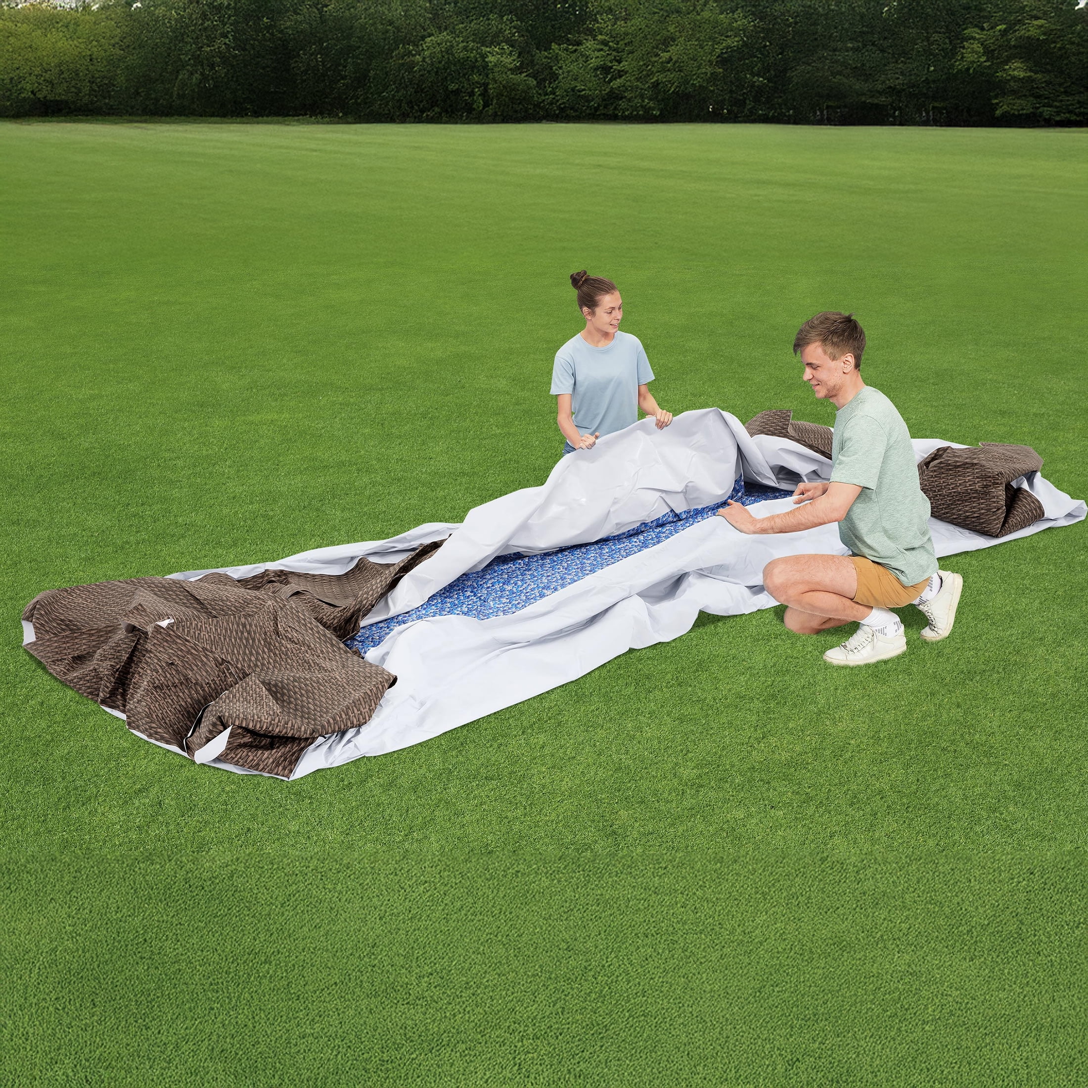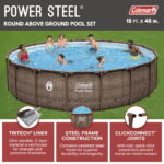 Kick off the summer with an above ground pool in your backyard, ready to swim and splash the day away! Durable Construction The Coleman® Power Steel™ Above Ground Pool is easy to set up and built to last. The durable, corrosion-resistant steel frame is equipped with our Seal & Lock System™ for a sturdy and secure frame connection. The Tritech™ liner is made of durable material that is reinforced for strength and puncture-resistance. Plus, the outside of the liner is printed with a realistic stone pattern to seamlessly fit into your beautiful backyard. Additional Features This above ground pool set also comes stocked with a filter pump, a ladder, and a pool cover. Your family will love spending the day in this Power Steel pool!