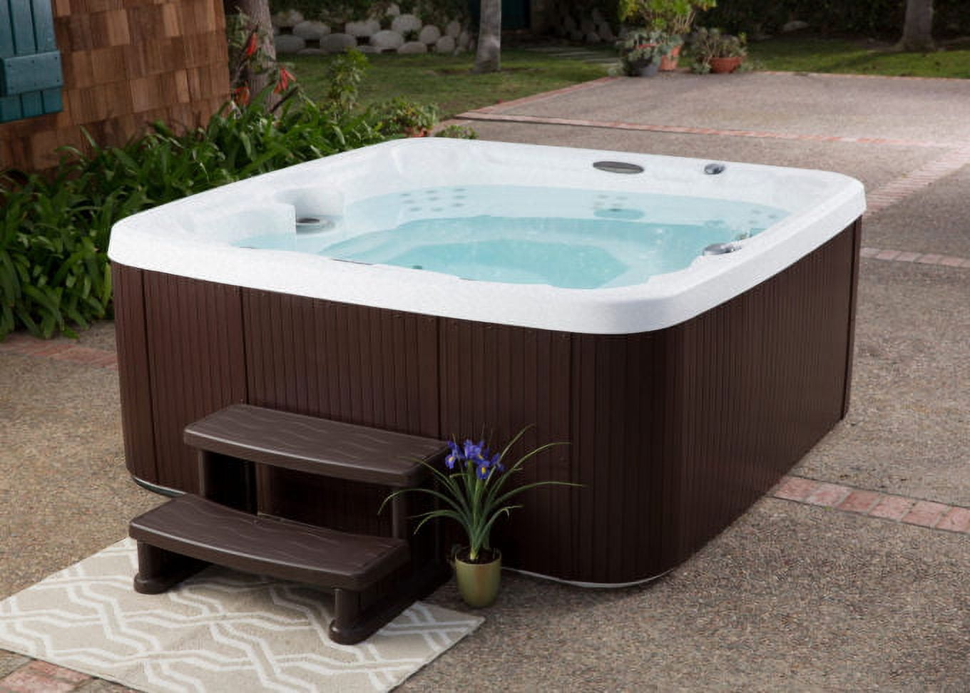 Enjoy this luxurious Lifesmart Spas Coronado (LS600DX) Hot Tub – 7 Person, 65-Jet, 220v Spa, in Sea Salt/ Espresso Brown with cover lifter and steps included!