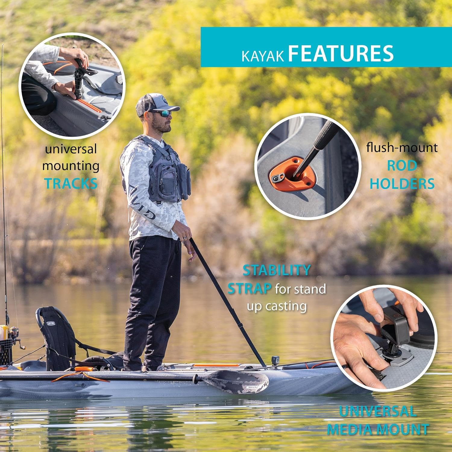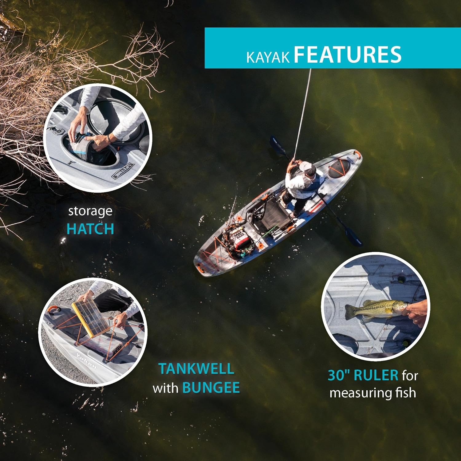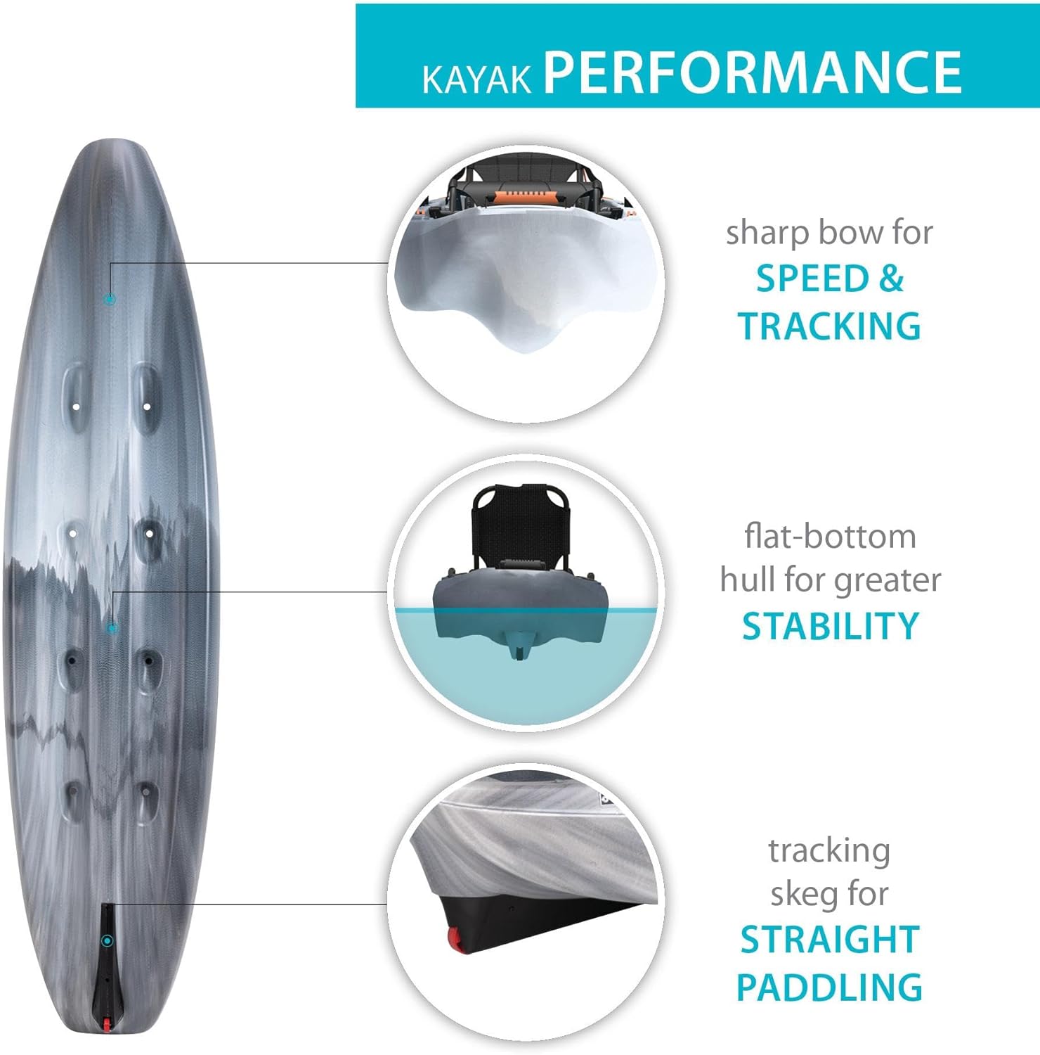 - Kayak Includes Quick-Dry Foam-Back Mesh Seat | Water-Resistant Oval Storage Hatch | Comfort Seating Design Is Easy to Adjust | Ready to Fish – Triple Rod Holder Design