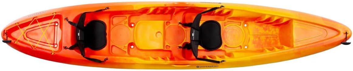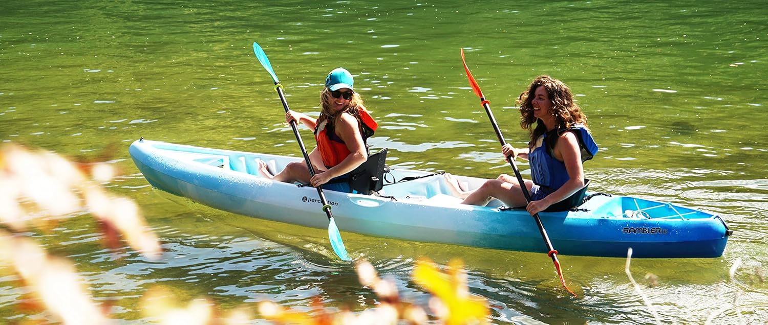 The Perception Rambler 13.5 tandem kayak is the perfect choice for new paddlers or anyone in search of a playful, highly versatile, and affordable boat. The supremely stable sit-on-top design is exceptionally safe and easy for anyone to get in and out of. The roomy, two-person design maintains the maneuverability of its smaller sibling, while adding stability. Features like easy-access storage and spacious seats that are padded and adjustable mean maximum comfort while sharing the water.
