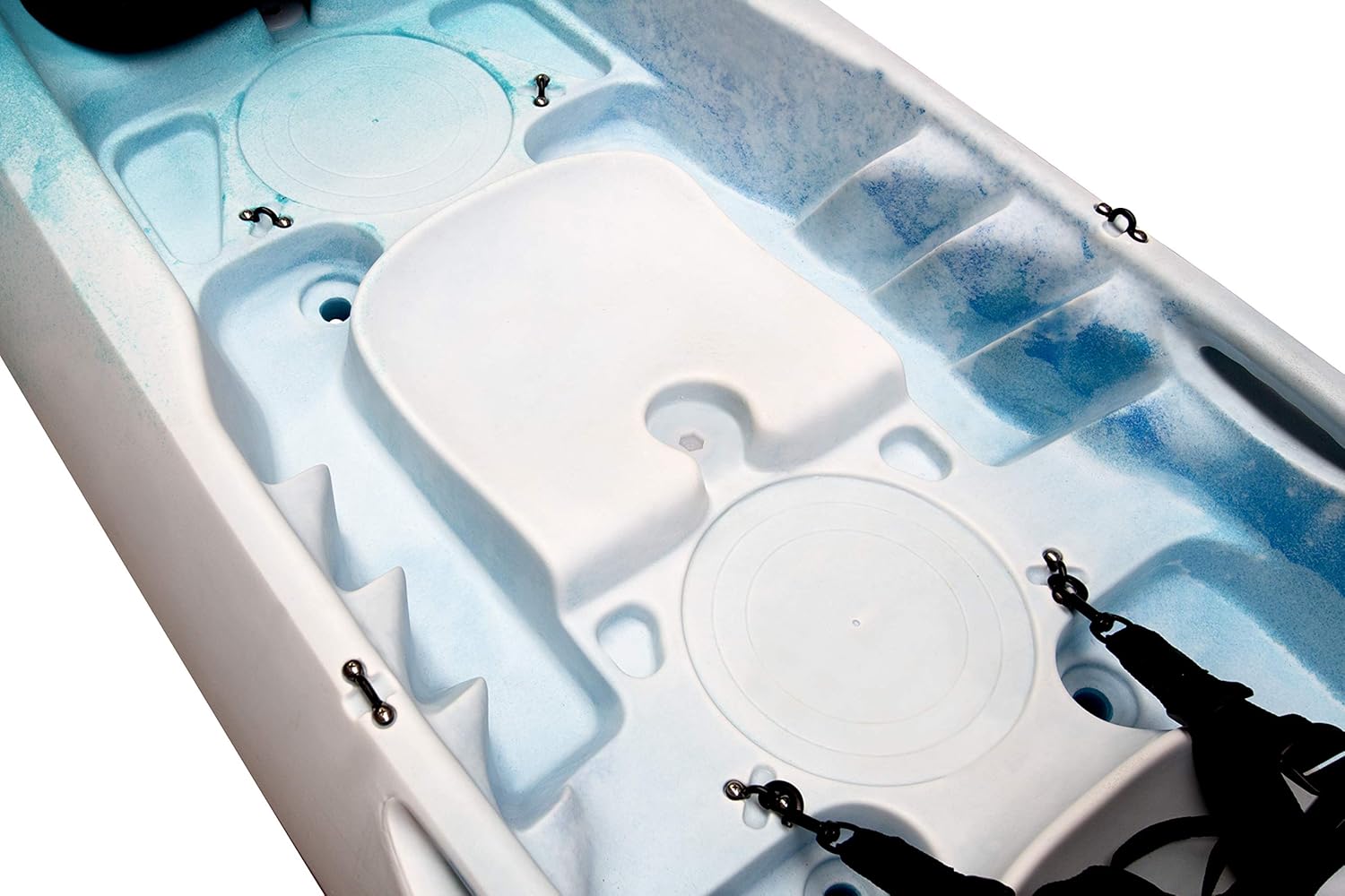 - Roomy molded-in seat is easy for anyone to get in and out | Removable padded seat and backrest with adjustable support | Multiple footrest options accommodate paddlers of all sizes